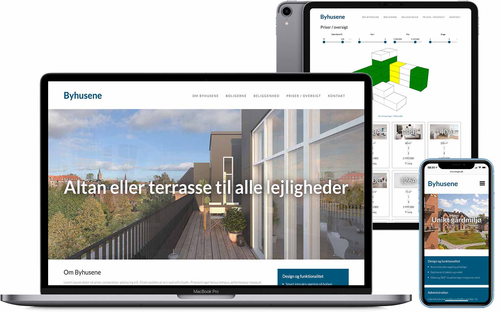 En website løsning, skræddersyet til projektsalg og udlejning.